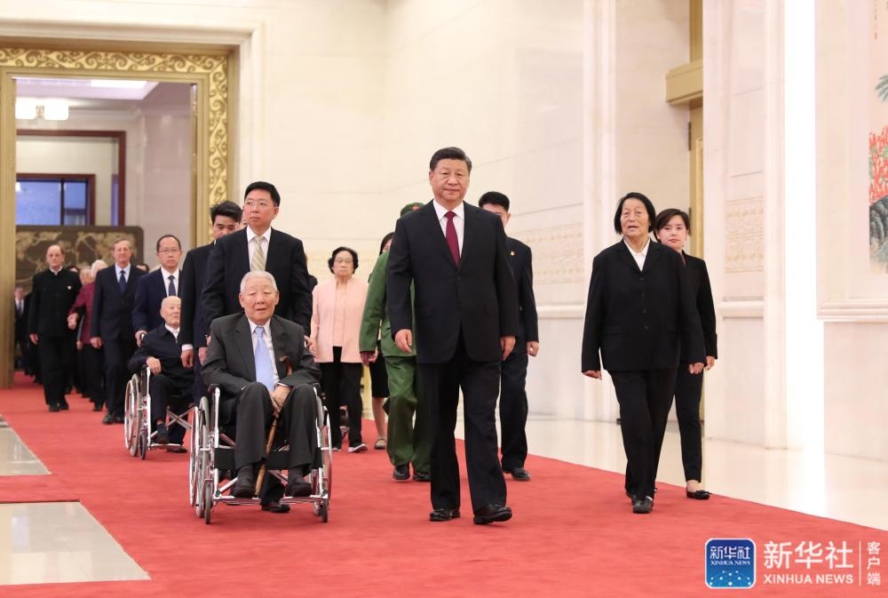 ↑9月29日,中華人民共和國國家勛章和國家榮譽(yù)稱號頒授儀式在北京人民大會堂金色大廳隆重舉行。中共中央總書記、國家主席、中央軍委主席習(xí)近平同國家勛章和國家榮譽(yù)稱號獲得者一同步入會場。新華社記者丁海濤攝