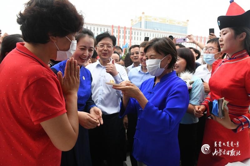 7月25日,自治區(qū)黨委副書記、自治區(qū)主席布小林在調(diào)研2020年內(nèi)蒙古自治區(qū)民族手工藝和文創(chuàng)旅游精品展示活動(dòng)時(shí)來到內(nèi)蒙古味道展示區(qū)。內(nèi)蒙古日?qǐng)?bào)社融媒體記者 韓卿立 攝