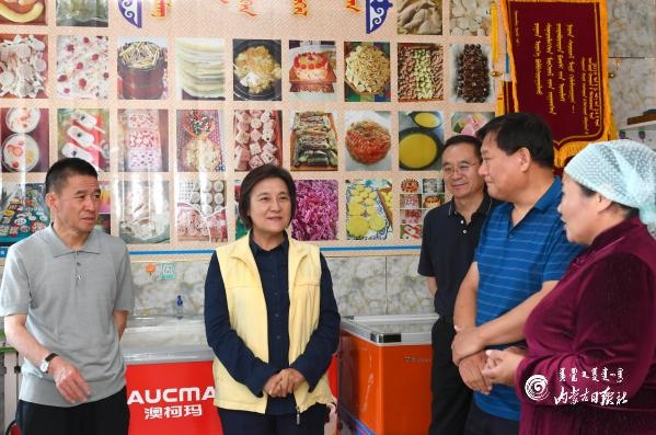 我區(qū)民族特色奶制品具有很大的發(fā)展?jié)摿?。在新巴爾虎左旗娜仁薩其爾巴爾虎奶食品加工基地,布小林考察產(chǎn)品種類、工藝流程、安全檢測(cè)、包裝銷售等方面的情況。得知基地被認(rèn)定為奶制品技藝培訓(xùn)教室和扶貧車間、主要安置建檔立卡貧困戶就業(yè)時(shí),她對(duì)此給予肯定,鼓勵(lì)基地進(jìn)一步發(fā)揮引領(lǐng)帶動(dòng)作用,積極探索特色化、標(biāo)準(zhǔn)化、品牌化發(fā)展路子,幫助更多貧困群眾增收致富。