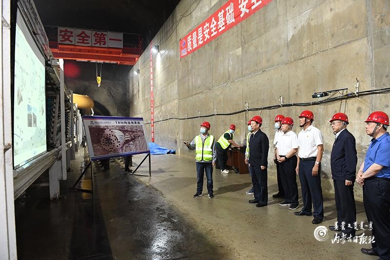 8月12日,自治區(qū)黨委書記、人大常委會(huì)主任石泰峰來(lái)到興安盟科右前旗察爾森鎮(zhèn)引綽濟(jì)遼2號(hào)隧洞輸水管線建設(shè)現(xiàn)場(chǎng),了解工程進(jìn)展情況。內(nèi)蒙古日?qǐng)?bào)記者 袁永紅 攝