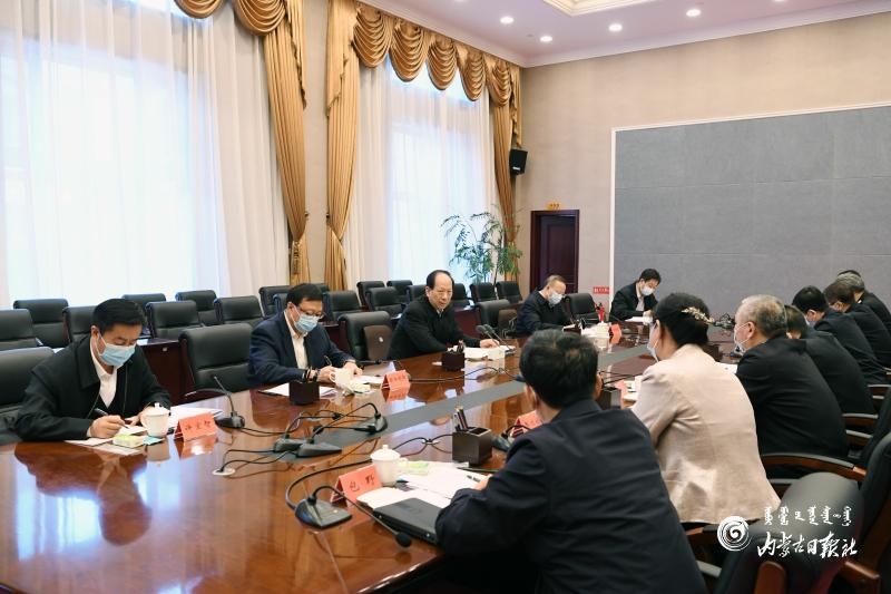 1月4日,自治區(qū)黨委書記、人大常委會主任石泰峰在滿洲里市主持召開新冠肺炎疫情防控工作匯報會。內蒙古日報記者 袁永紅 攝