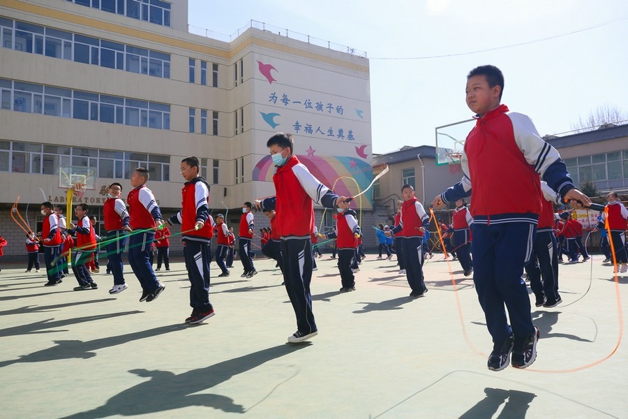 同學(xué)們在操場練習(xí)跳繩  彭瑞誠 攝影