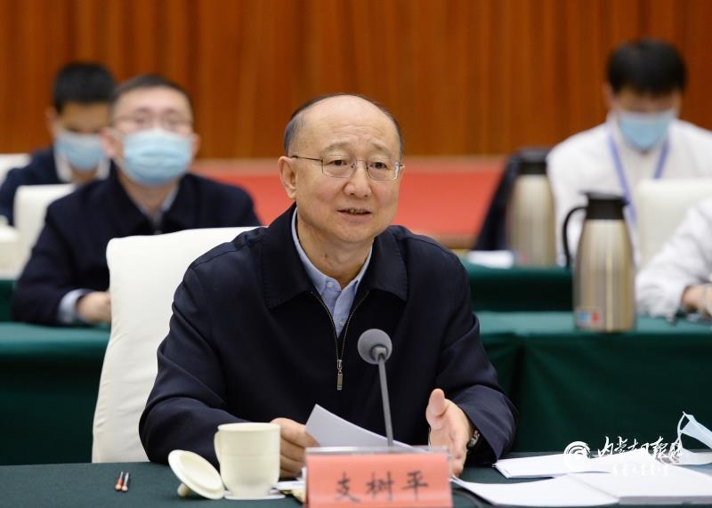 11月13日下午,中央第四督導(dǎo)組組長(zhǎng)、全國政協(xié)常委、提案委員會(huì)副主任支樹平出席會(huì)議并反饋督導(dǎo)意見。內(nèi)蒙古日?qǐng)?bào)社融媒體記者 袁永紅 攝
