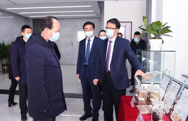 12月16日,自治區(qū)黨委書記、人大常委會主任石泰峰來到鄂爾多斯市高新技術開發(fā)區(qū),了解尚德艾康藥業(yè)項目建設研發(fā)情況。內蒙古日報社融媒體記者 袁永紅 攝