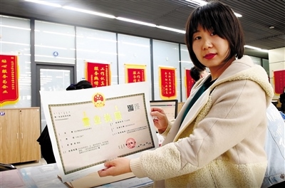 包頭市昆都侖區(qū)實(shí)現(xiàn)“一枚印章管審批”。商戶(hù)在展示剛更換的營(yíng)業(yè)執(zhí)照。本報(bào)記者孟和朝魯攝