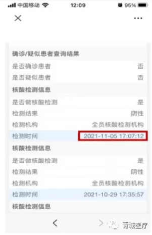市民7天內(nèi)所做的核酸檢測結(jié)果會在健康碼綠碼下方顯示,7天之后信息會轉(zhuǎn)到綠碼下方的“個(gè)人健康風(fēng)險(xiǎn)評估(初步流調(diào))表”中,點(diǎn)擊后可查看最近3次的核酸檢測結(jié)果。核酸檢測結(jié)果具體到日期和具體時(shí)點(diǎn)。