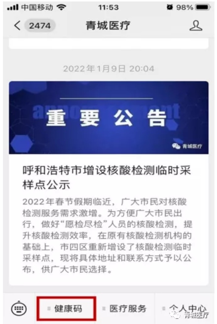 最近有呼和浩特市民反映不能及時(shí)在“青城醫(yī)療”健康碼上查詢到核酸檢測結(jié)果,建議大家執(zhí)行如下操作: