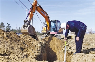 3月21日,工作人員駕駛挖掘機在呼和浩特市賽罕區(qū)郜獨利村農(nóng)田里開挖滴灌管道。據(jù)了解,賽罕區(qū)2022年共實施高標準農(nóng)田建設項目3.5萬畝,總投資6300萬元。項目于3月21日全面開工建設,建成后將形成“地平整、土肥沃、旱能灌、澇能排、渠相連、路相通、林成網(wǎng)”的新型高標準農(nóng)田,預計糧食畝均增產(chǎn)20%以上,水資源利用率提高30%以上。(王磊攝)