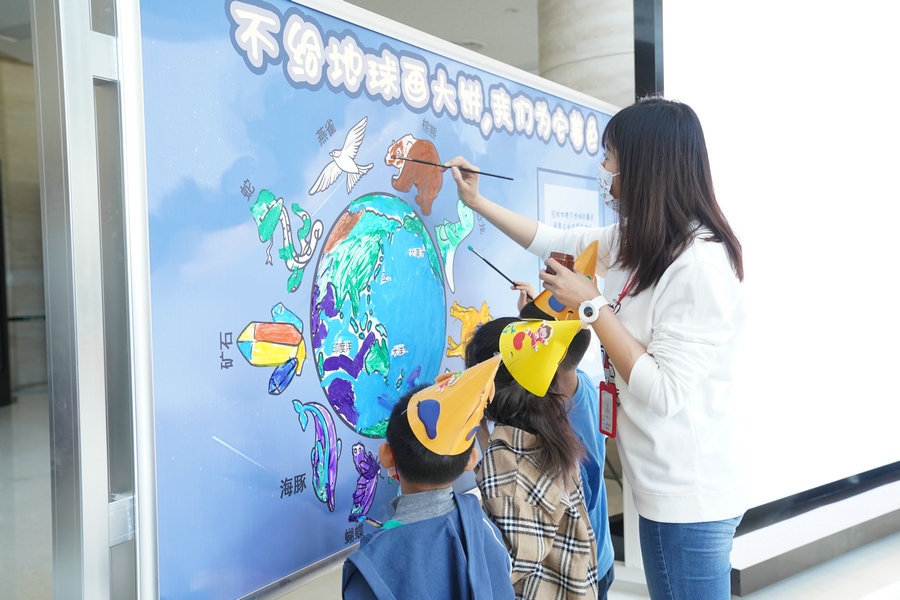 現(xiàn)場開展了“大自然在說話”“恐龍與我們,兩代地球居民的長談”“不給地球畫大餅,我們?yōu)樗钡纫幌盗兄黝}科普活動。在“為地球著色”活動中,參與者每人一筆為地球涂上“他”眼中地球的顏色,定格最美地球畫面;在“大自然在說話”活動中,向公眾免費開放的《生物大滅絕》科普課堂為聽眾講述了在地球生命演化過程中動物、植物的出現(xiàn)、五次生物大滅絕等自然知識;在“恐龍與我們,兩代地球居民的長談”活動中,參觀者通過體驗在放大鏡下修復(fù)三葉蟲、恐龍化石等活動了解古生物發(fā)掘、修復(fù)知識。