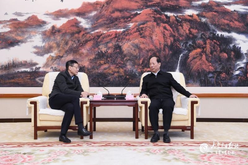 自治區(qū)領(lǐng)導(dǎo)于立新、張韶春及有關(guān)部門負(fù)責(zé)同志參加會(huì)見。(內(nèi)蒙古日?qǐng)?bào)社融媒體記者劉曉冬)