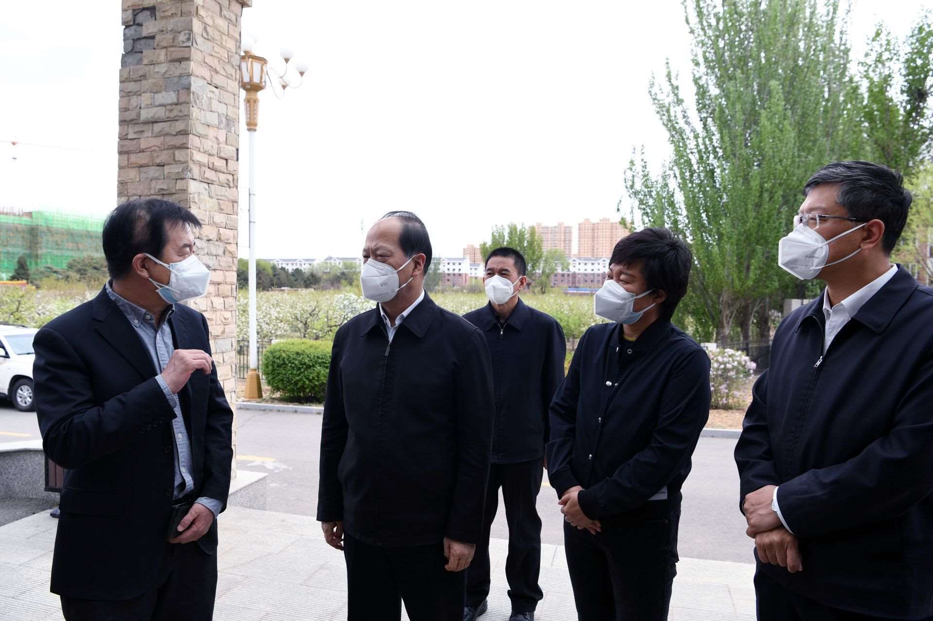 4月26日,自治區(qū)黨委書記、人大常委會主任石泰峰來到包頭市九原區(qū)龍苑小區(qū)B區(qū),了解疫情防控封控情況。內(nèi)蒙古日報社融媒體記者 袁永紅攝