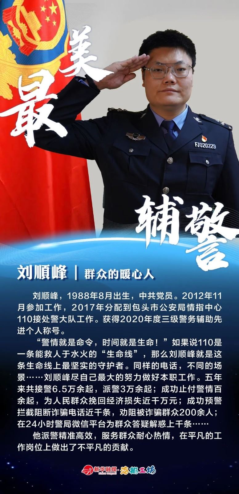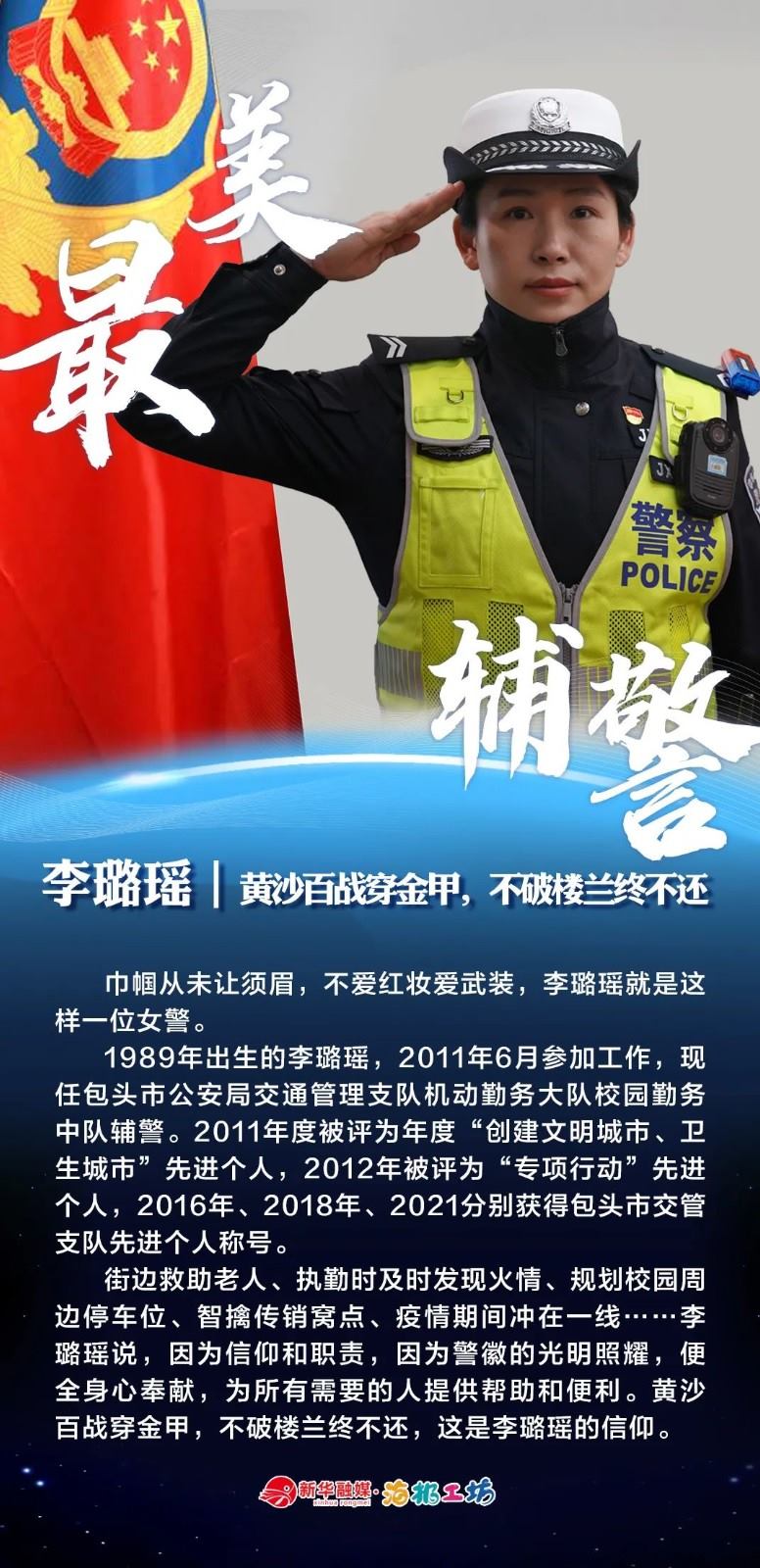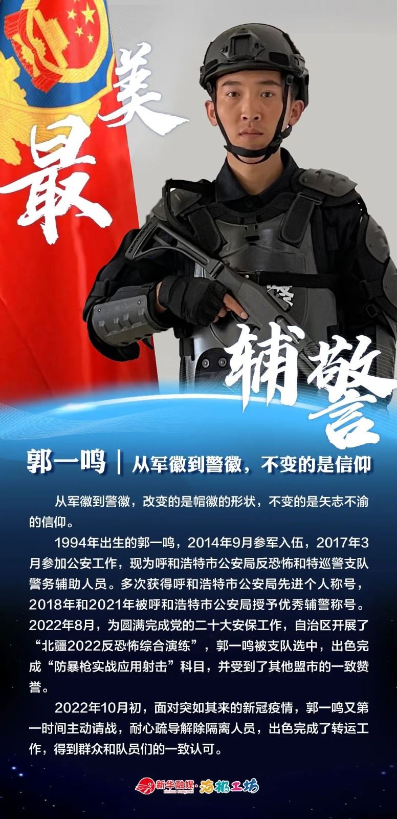 “不同的肩章,同樣的堅(jiān)守……”在“感動北疆·最美輔警”獲獎?wù)咧校?strong>有堅(jiān)守忠誠的安全衛(wèi)士郭一鳴,對癥下藥的老片兒警康華,服務(wù)群眾的熱心人辛永紅,校園安全的“護(hù)航員”李璐瑤,社區(qū)警務(wù)“信息化管家”鄭威,警務(wù)支撐“小能手”胡建業(yè),110接處警“活地圖”劉順峰,網(wǎng)上巡查“質(zhì)檢員”王昊,基層交通安全“好聲音”劉巖,一線“智慧公安”排頭兵張?zhí)睢?/strong>