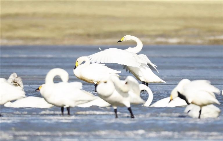內(nèi)蒙古湘鄂豫晉陜六省區(qū)黨報(bào)聯(lián)動(dòng)聚焦?jié)竦嘏c候鳥生態(tài)保護(hù)—— 看小天鵝北飛,游神州大地“天鵝湖”