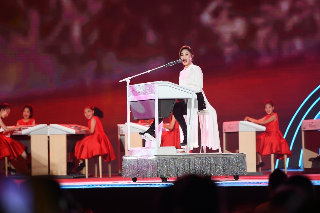 一臺(tái)可以腳踏的鋼琴是《玖月奇跡》給人最為深刻的印象,今天這架鋼琴來(lái)到了草原文化節(jié)的現(xiàn)場(chǎng),動(dòng)感的旋律,高亢的嗓音配合著極具節(jié)奏感的彈奏給人以深刻的印象,這樣的表演方式獨(dú)樹(shù)一幟,能到現(xiàn)場(chǎng)一睹風(fēng)采的觀眾都非常幸運(yùn)。