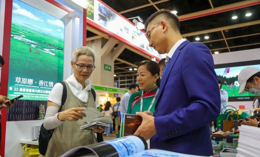 7月19日上午10:00,第33屆香港書展在香港會(huì)議展覽中心開幕。內(nèi)蒙古主題省(區(qū))展區(qū)正式亮相,展出近年來(lái)內(nèi)蒙古自治區(qū)出版的50種精品主題出版物、200種文藝類出版物、20種數(shù)字融合出版物、89種優(yōu)秀音像制品等,同時(shí)還展出了80種優(yōu)秀少兒出版物、《內(nèi)蒙古印象》攝影作品、“內(nèi)蒙古禮物”文創(chuàng)產(chǎn)品等,國(guó)家一級(jí)文物紅山文化玉龍高仿制品也亮相展區(qū),吸引眾多讀者駐足觀賞。