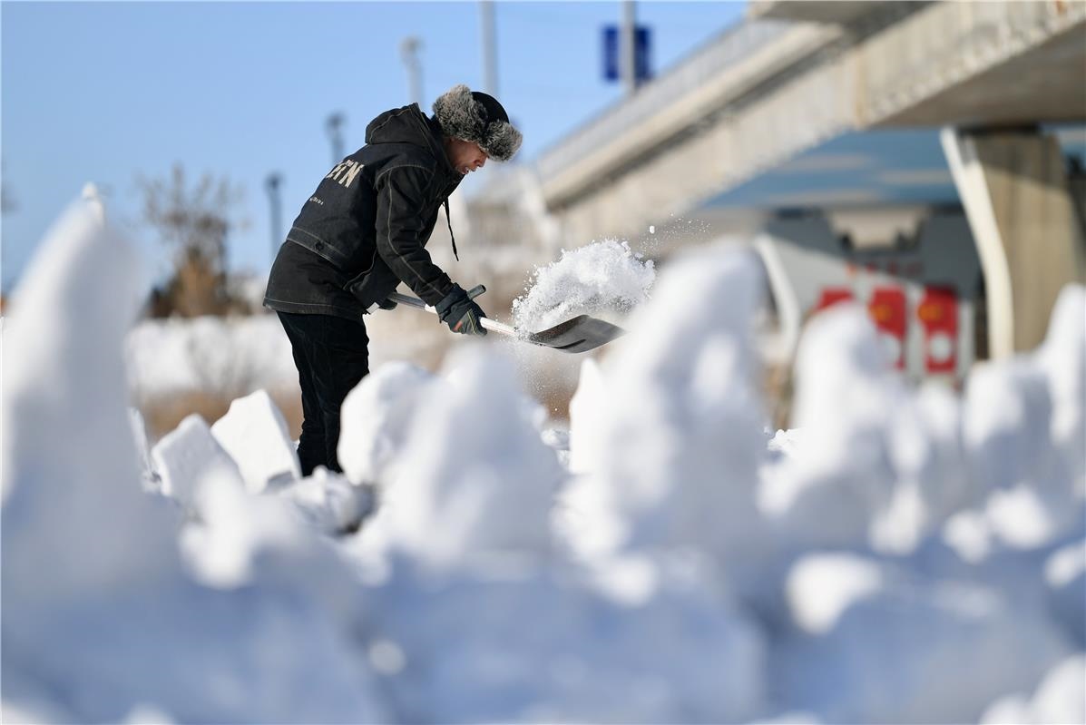 陳艷東每天只能利用中午最暖和的時(shí)間來雕刻