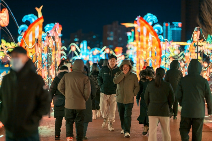 當晚,呼和浩特零下15攝氏度左右,寒冷擋不住市民欣賞流光溢彩的燈會,只見市民穿著保暖的外套,戴著帽子手套,一邊逛燈會,一邊拍照片、拍視頻,還有的市民開直播,與全國各地的網(wǎng)友一起分享這美好時刻。