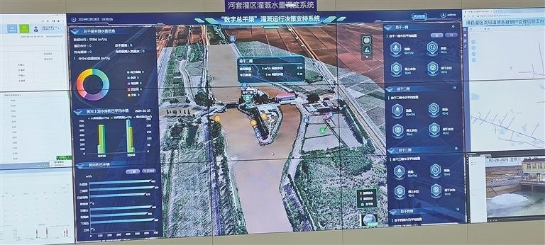 在河套灌區(qū)水量信息化監(jiān)測中心50米長的數(shù)字屏幕上,“數(shù)字總干渠”灌溉運行決策支持系統(tǒng)只是其中一項內(nèi)容,在這個數(shù)字屏幕上,還能看到黃河三盛公水利樞紐工程的實時畫面、河套灌區(qū)渠溝道樞紐工程實時運行現(xiàn)狀、總干渠5座樞紐工程運行情況視頻、河套灌區(qū)水量調(diào)度系統(tǒng)、內(nèi)蒙古黃河實時視頻監(jiān)控等各種實時監(jiān)控畫面和實時數(shù)據(jù),先進的科技讓人震撼。