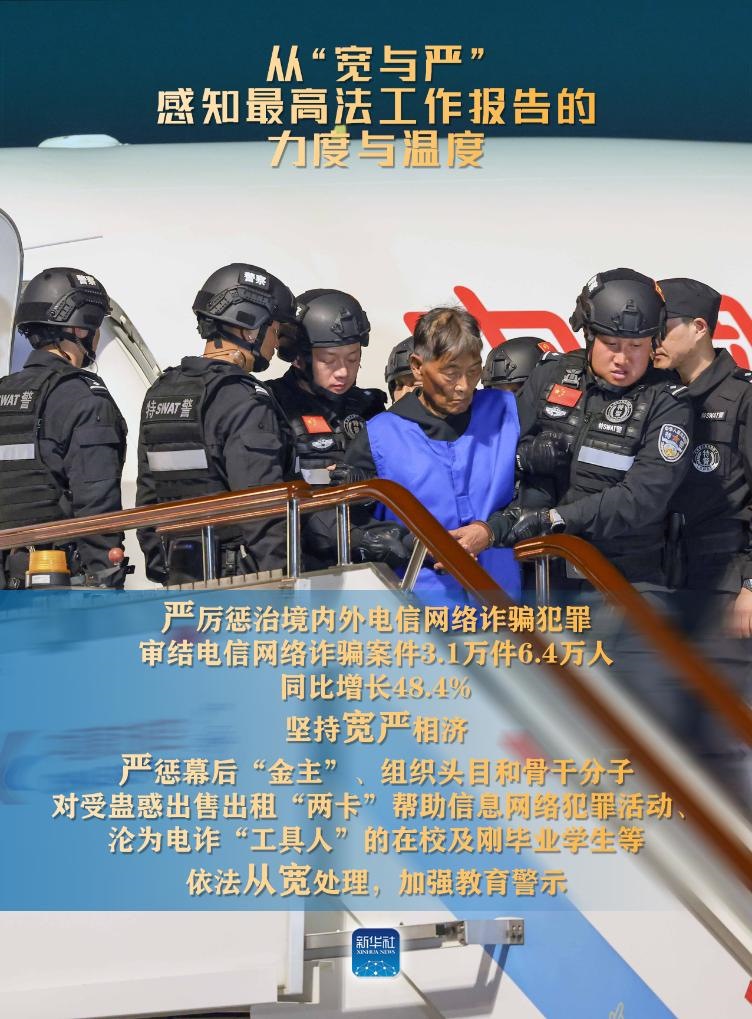 新華社北京3月9日電(記者高潔、馬知遙、袁秋岳)3月8日,最高人民法院工作報(bào)告提請十四屆全國人大二次會(huì)議審議。報(bào)告中列舉了不少案例,有的案件從嚴(yán)從重判決,有的從寬或無罪判決。讓我們從“寬與嚴(yán)”感知報(bào)告的力度與溫度。