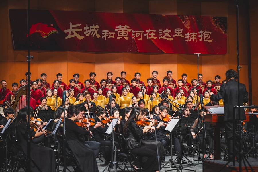 12月20日晚,“長(zhǎng)城和黃河在這里擁抱”交響聲樂(lè)作品音樂(lè)會(huì)在內(nèi)蒙古藝術(shù)學(xué)院新華校區(qū)演藝廳華美上演。