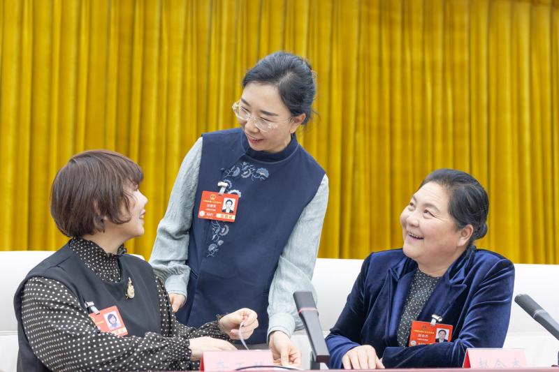 3月7日,全國人大代表胡海娟(左)建議,通過在各級學(xué)校設(shè)立專職家庭教育指導(dǎo)教師等舉措,強化家庭教育指導(dǎo),推動家校社協(xié)同育人,促進青少年健康成長。記者 于濤 攝