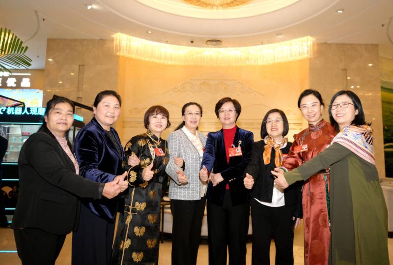 3月7日,參加十四屆全國人大三次會議的內(nèi)蒙古代表團的部分女代表們在駐地合影,迎接即將到來的三八婦女節(jié),表達了對全國女性的美好祝愿。記者 馬建兵 攝