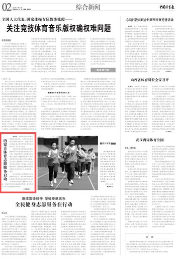 2024年3月11日,《中國(guó)體育報(bào)》第2版刊發(fā)題為《內(nèi)蒙古體育志愿服務(wù)啟動(dòng)》的文章,報(bào)道了2025年內(nèi)蒙古體育志愿服務(wù)啟動(dòng)儀式,日前在大青山國(guó)家登山健身步道舉行。內(nèi)蒙古自治區(qū)24家企事業(yè)單位和56家體育社會(huì)組織的千余人參與活動(dòng)。