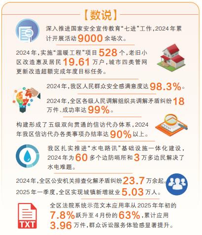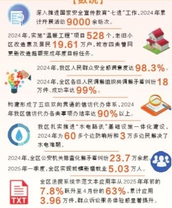 2024年,全區(qū)各級人民調(diào)解組織共調(diào)解矛盾糾紛18萬件、成功率達99%。全區(qū)信訪代辦各類事項辦結(jié)率達90%以上,一大批群眾急難愁盼事項得到及時就地解決。