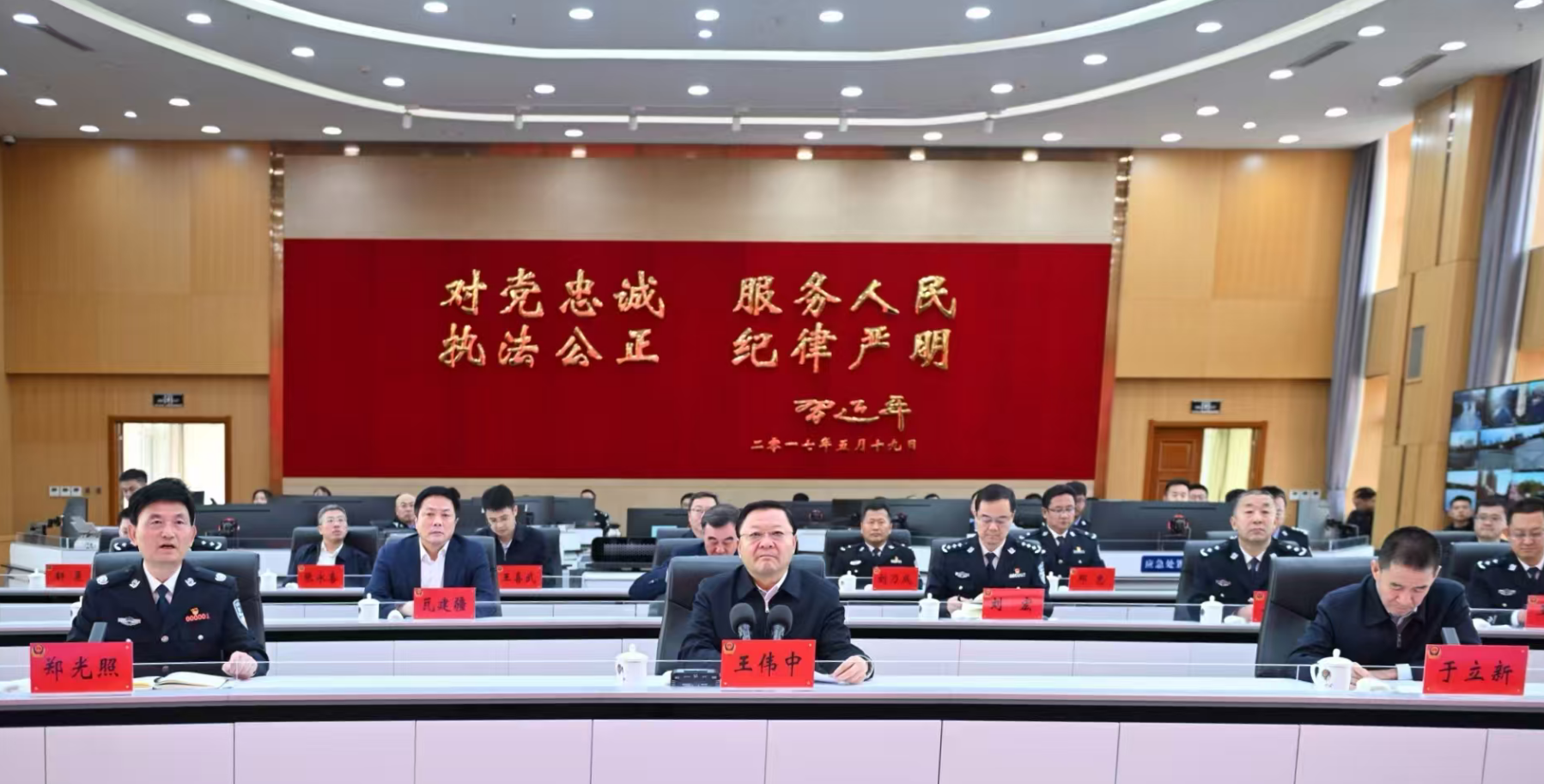 在自治區(qū)公安廳,王偉中參觀了情報指揮中心并視頻連線二連浩特口岸、赤峰旺業(yè)甸公安檢查站、呼和浩特大召廣場執(zhí)勤點,了解公安廳“情指行”一體化運行機制和相關工作情況。他指出,要深入貫徹“對黨忠誠、服務人民、執(zhí)法公正、紀律嚴明”的總要求,牢牢把握我區(qū)作為邊疆民族地區(qū)的實際,嚴厲打擊違法犯罪,有效防范化解矛盾糾紛和風險隱患,嚴格規(guī)范公正文明執(zhí)法,為建設更高水平的平安內蒙古貢獻力量。
