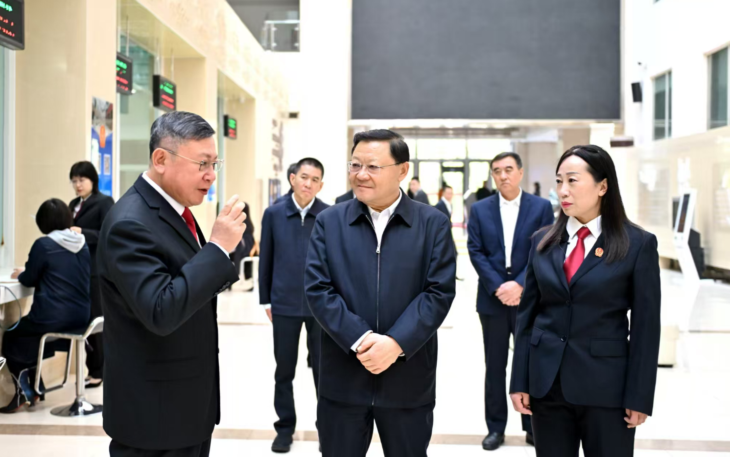 在自治區(qū)高級人民法院,王偉中先后來到訴訟服務大廳、融合法庭,了解多元化解矛盾糾紛、智能輔助審判等情況。他指出,要完善司法為民舉措,提升民商事案件審判水平,確保每一起案件都經得起歷史、實踐和人民的檢驗。要緊盯發(fā)展新質生產力、優(yōu)化營商環(huán)境等領域,持續(xù)強化司法服務,更好發(fā)揮法治固根本、穩(wěn)預期、利長遠作用?! ?/p>
