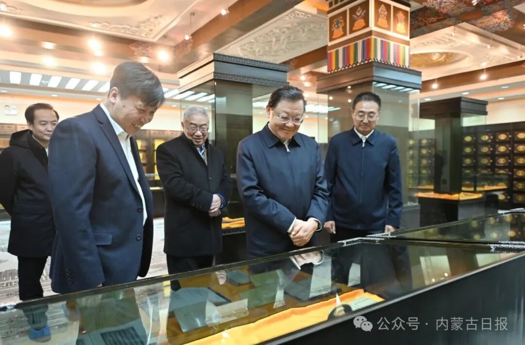 12月16日,自治區(qū)黨委書記王偉中來(lái)到圖書館、蒙古文古籍文獻(xiàn)展閱室,仔細(xì)察看館藏文獻(xiàn),詳細(xì)詢問圖書文獻(xiàn)資源建設(shè)、研究開發(fā)等工作。草原云·內(nèi)蒙古新聞網(wǎng)記者 馬建兵 攝