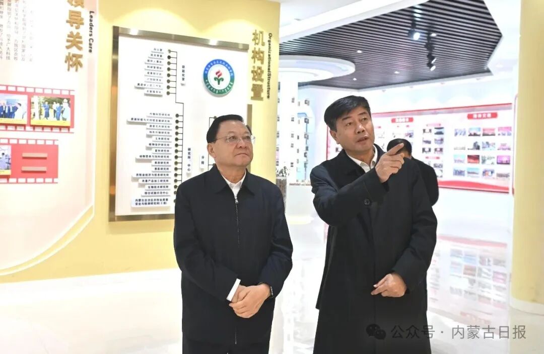 12月16日,自治區(qū)黨委書記王偉中在院史展覽廳了解農(nóng)科院發(fā)展歷程。草原云·內(nèi)蒙古新聞網(wǎng)記者 馬建兵 攝