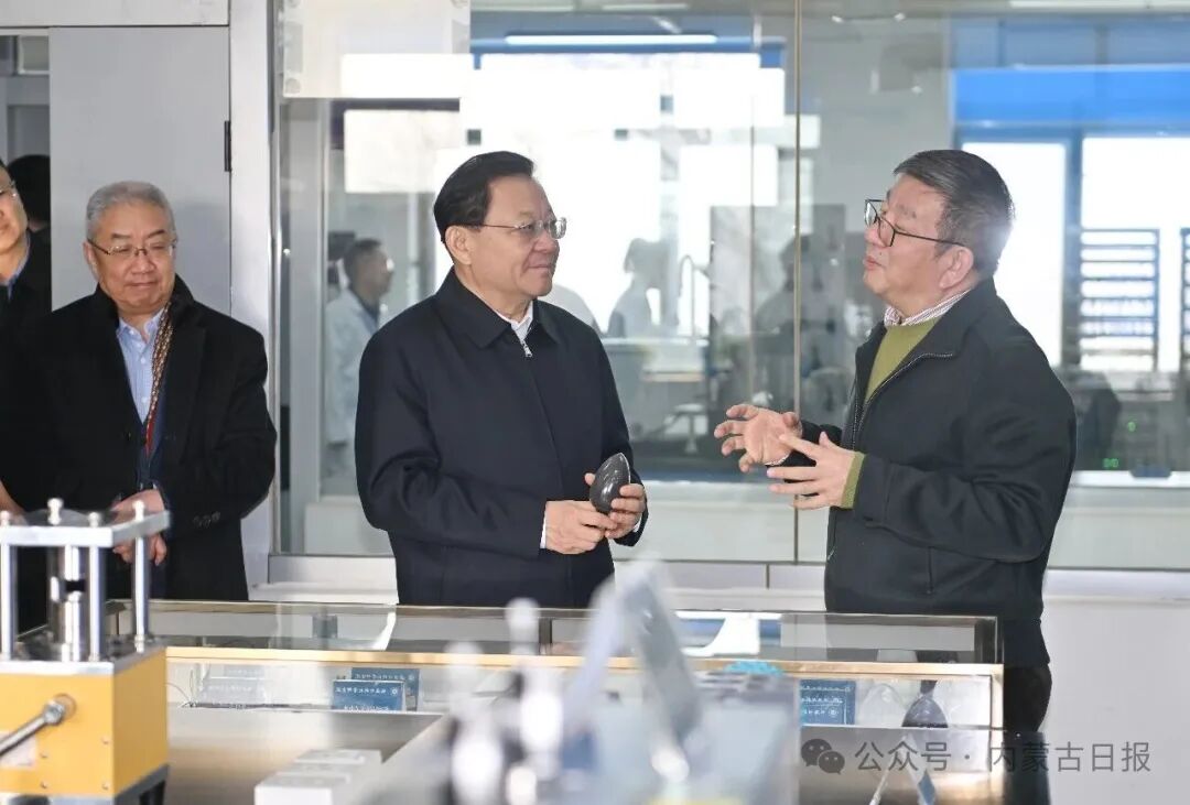 12月16日,自治區(qū)黨委書記王偉中走進(jìn)功能介孔材料實(shí)驗(yàn)室,認(rèn)真聽取高寒地區(qū)電池儲(chǔ)能系統(tǒng)研發(fā)等進(jìn)展情況介紹。草原云·內(nèi)蒙古新聞網(wǎng)記者 馬建兵 攝