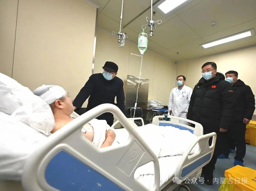 1月19日,宋元明在醫(yī)院看望慰問受傷人員。草原云·內(nèi)蒙古新聞網(wǎng)記者 韓卿立 攝