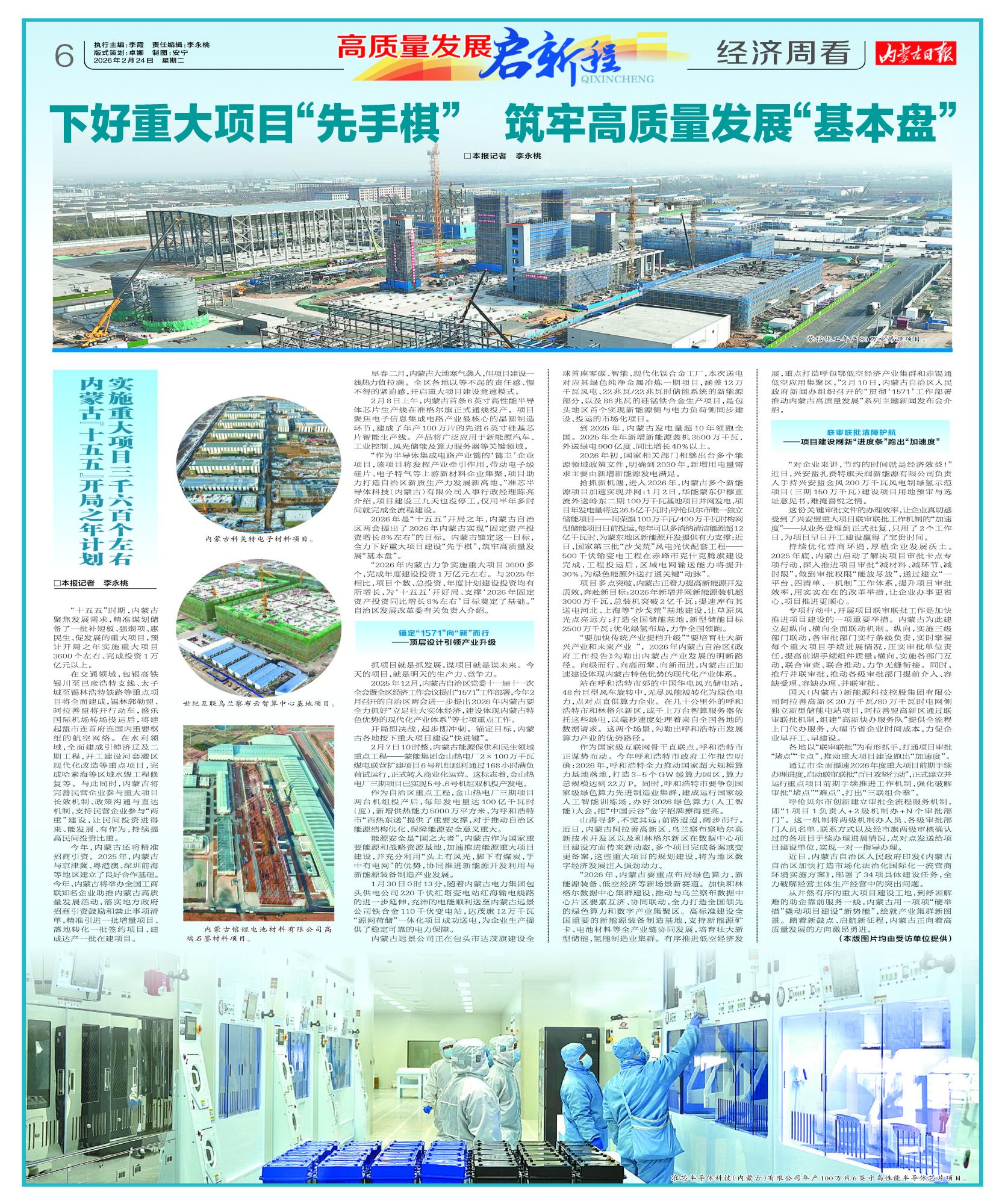 “2026年內蒙古力爭實施重大項目3600多個,完成年度建設投資1萬億元左右。與2025年相比,項目個數(shù)、總投資、年度計劃建設投資均有所增長,為‘十五五’開好局、支撐‘2026年固定資產投資同比增長8%左右’目標奠定了基礎?!弊灾螀^(qū)發(fā)展改革委有關負責人介紹。
