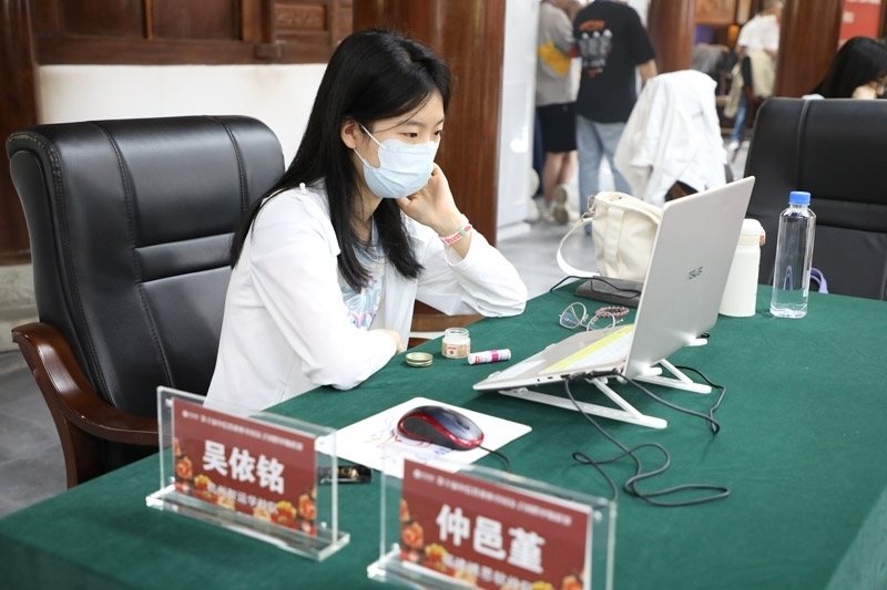 吳依銘與仲邑堇線上比賽。人民網(wǎng)記者 李乃妍攝