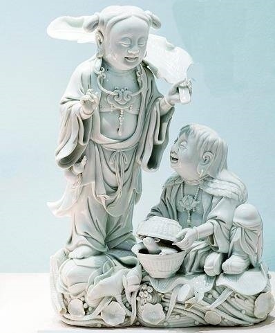 展覽第一單元“泥根玉雪元無染”,從“君子如蓮”的角度去解讀儒家文化中的蓮荷意象。先秦時(shí)期,蓮花成為儒家的“比德”之花,象征士大夫的芳潔之志,是“花中君子”人格意象的起點(diǎn)。屈原以“蓮花”寄托高潔志向,使其具有人格特征。漢代人們視蓮花為祥瑞。唐代文人賦予“白蓮”清凈不染的品性,使其“君子之義”進(jìn)一步顯現(xiàn)。宋代大儒周敦頤一生為官廉潔奉公,施澤于民,并以名篇《愛蓮說》定格了蓮花“中通外直”“亭亭凈植”的清廉君子意象和文人節(jié)操。第二單元“蓮花影里數(shù)樓臺”,從“花開見佛”“以蓮喻道”去闡釋佛道,以蓮花之潔凈比喻出于世間而清凈無染的品質(zhì),賦予蓮荷光明、美好、高尚和圣潔的意象。第三單元“映日荷花別樣紅”,從“和和美美”“福壽永年”“荷風(fēng)滿堂”的角度展示了世俗文化影響下與蓮有關(guān)的吉祥圖形和詞語。明清時(shí)期,民間因“荷”“和”諧音,以及蓮荷文化蘊(yùn)含的“以和為貴”的理念,將蓮荷作為愛情幸福、婚姻美滿、多子昌盛、生活富裕、生生不息等涵義的吉祥物,和諧、和睦、和合的“蓮荷意象”得以確立。蓮荷在中國園林中更是“點(diǎn)睛之筆”,賞荷、詠詩、品酒,是園林生活中的盛事,也是寄托情志的重要方式,展現(xiàn)出人與人、人與自然和諧共生的美好畫卷。
