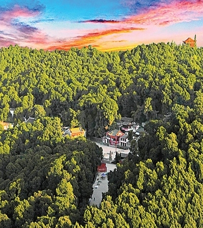 遠(yuǎn)眺四川省梓潼縣七曲山風(fēng)景區(qū),綠樹(shù)藍(lán)天相映成趣。本文圖片均由李 貧攝