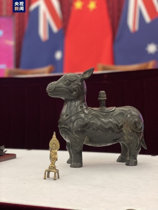 本次歸還的文物包括潛龍化石、鎏金觀音銅像和彩繪陶制人物騎馬俑。經(jīng)初步鑒定,潛龍化石屬于晚侏羅世到早白堊世的恐龍化石,而觀音銅像和騎馬俑的歷史可追溯到唐代甚至北朝,具有珍貴的歷史文化價(jià)值。同時(shí),澳大利亞國(guó)家美術(shù)館還另外向中國(guó)政府捐贈(zèng)了一件牛形的盛酒禮器——“犧尊”。我國(guó)文物專家通過(guò)對(duì)文物基本信息和圖片的判斷,鑒定這件“犧尊”用途為酒器,是明清或近代的仿古文物藝術(shù)品。