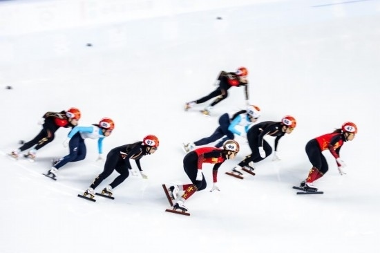 2月17日,第十四屆全國冬季運(yùn)動(dòng)會(huì)短道速滑(公開組)女子3000米接力半決賽中。新華社記者 黃偉 攝