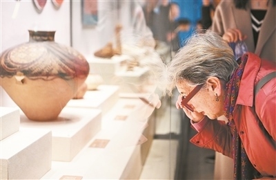 圖為參觀者在國家海洋博物館觀看“大河文明”展。