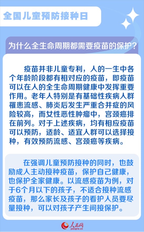 2024年4月25日為我國第38個“全國兒童預(yù)防接種日”,宣傳主題為“共同行動 接種疫苗 為全生命周期護(hù)航”。溫州醫(yī)科大學(xué)附屬第二醫(yī)院、育英兒童醫(yī)院兒童預(yù)防接種咨詢門診副主任醫(yī)師余剛在接受采訪時表示,對個人來說,全生命周期的健康保護(hù)是從接種第一針疫苗開始。