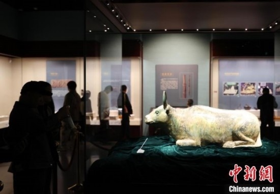 寧夏博物館鎮(zhèn)館之寶鎏金銅牛。中新網(wǎng)記者 于晶 攝