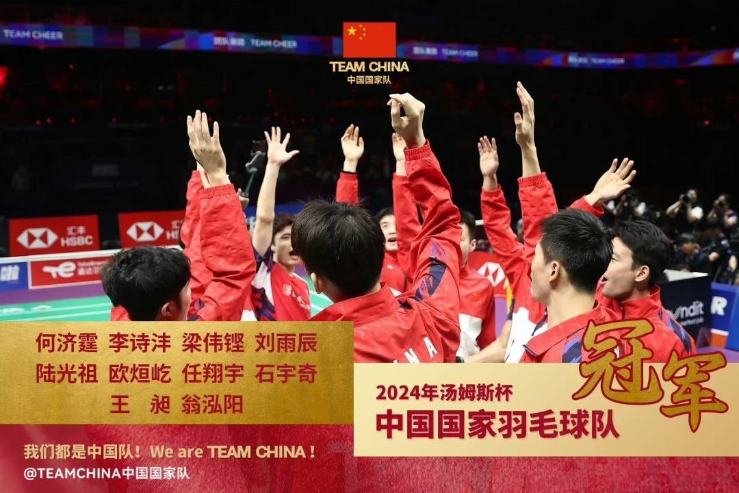 這是中國羽毛球隊參賽歷史上第11次捧起世界羽毛球男子團體錦標(biāo)賽最高榮譽湯姆斯杯,也是繼2012年后,再次同時包攬湯姆斯杯和尤伯杯雙冠。