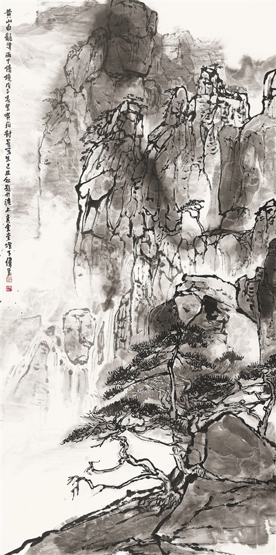 中國畫《雨中寫白龍?zhí)丁?,作者顧偉璽。