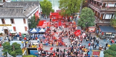 國慶假期,湖南常德河街舉辦豐富多彩的非遺文化展演活動(dòng),吸引了眾多游客。圖為十月一日拍攝的常德河街。蔡文龍攝(影像中國)