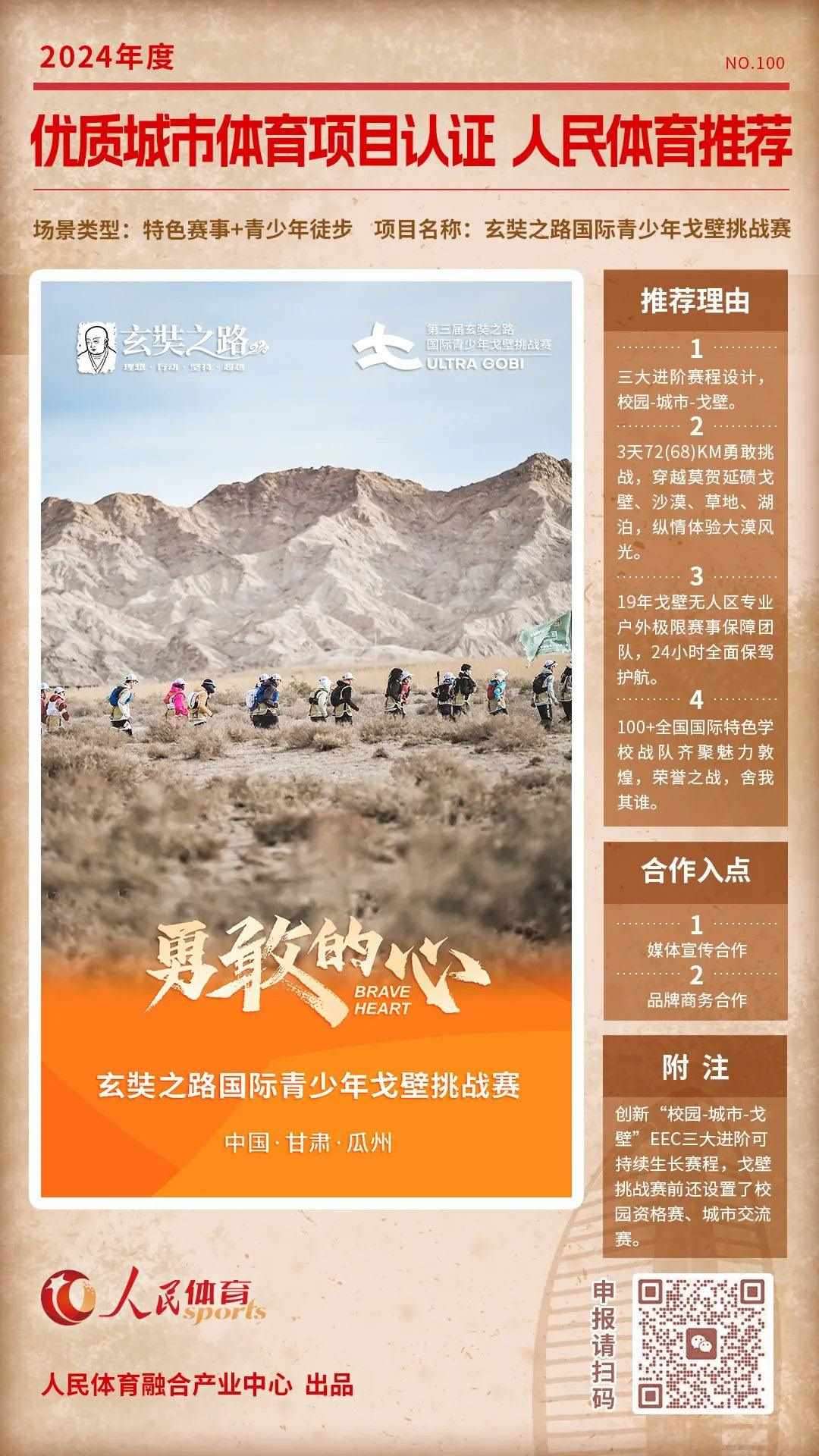 “優(yōu)質(zhì)體育賽事及活動認(rèn)證推薦計劃”是人民體育“城市體育產(chǎn)業(yè)高質(zhì)量發(fā)展計劃”的重要組成部分,人民體育一直致力于攜手權(quán)威機構(gòu)、組織單位等聯(lián)合推薦優(yōu)質(zhì)項目,項目類型包括且不限于賽事、活動,也涵蓋產(chǎn)品與服務(wù)類別。旨在以更客觀的角度,展示在體育產(chǎn)業(yè)發(fā)展中有所創(chuàng)新,有所價值的項目,促進多方相互了解,融合發(fā)展。