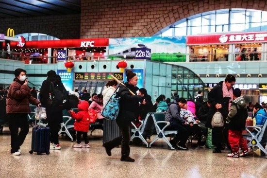2月5日迎來返程高峰,邯鄲站內(nèi)的旅客依次檢票進站。