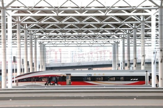 除夕當(dāng)天,一列復(fù)興號智能動車組蓄勢待發(fā)。