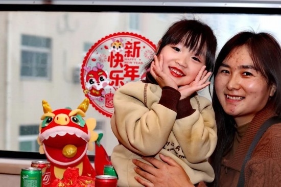 2024年2月4日,小旅客和媽媽笑容可掬。